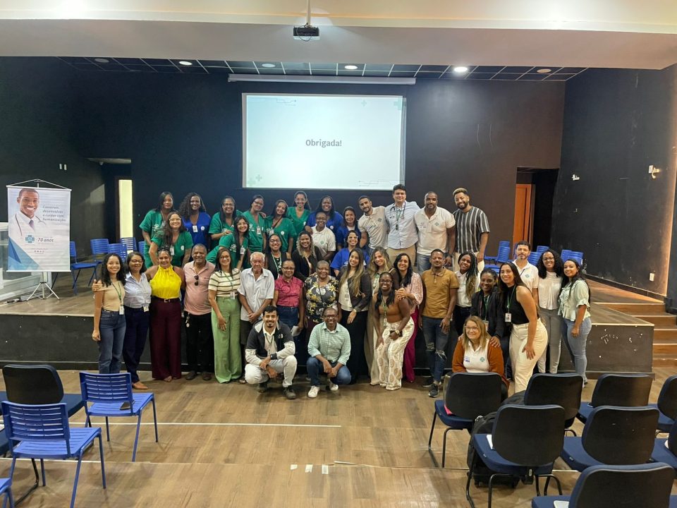 A Gerência Operacional do Hospital Campanha de Feira de Santana (HCFS) promoveu uma palestra sobre a importância do autocuidado para o trabalhador da saúde. Ao final do treinamento, foi realizada uma dinâmica entre os colaboradores.